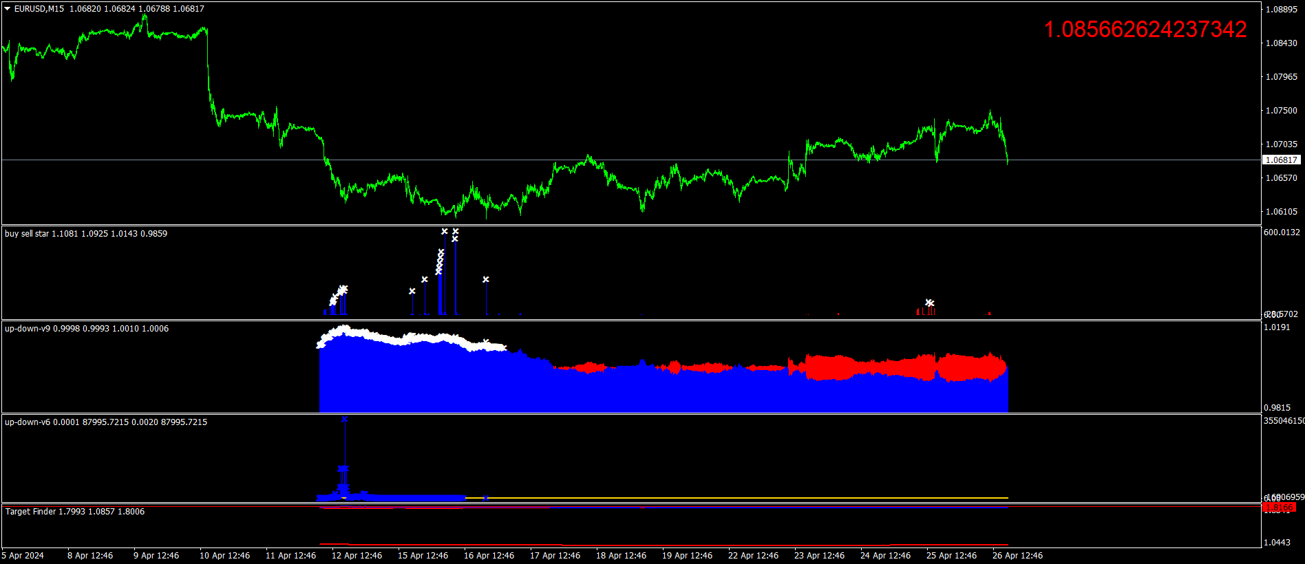 The filter consists of 2 indicators that must be met... when the signal stick crosses your average (I'll tell you -ob,os). Then there are two conditions... see the separate window at the bottom of the picture and find... if everything is fulfilled... the target finder starts (as the signal stick rises, so does the target finder (he doesn't care if the price goes up or down) like a signal bar)... The volume indicator starts to fall but the price rises... until the right small/big jump. Here the target finder stops and prints an alarm and a Arrow - it still works for me on the large squares in the picture - with accuracy - 4 pips on H1...On small squares (not final) in the picture - with precision - 10pips on H1 ..yet...