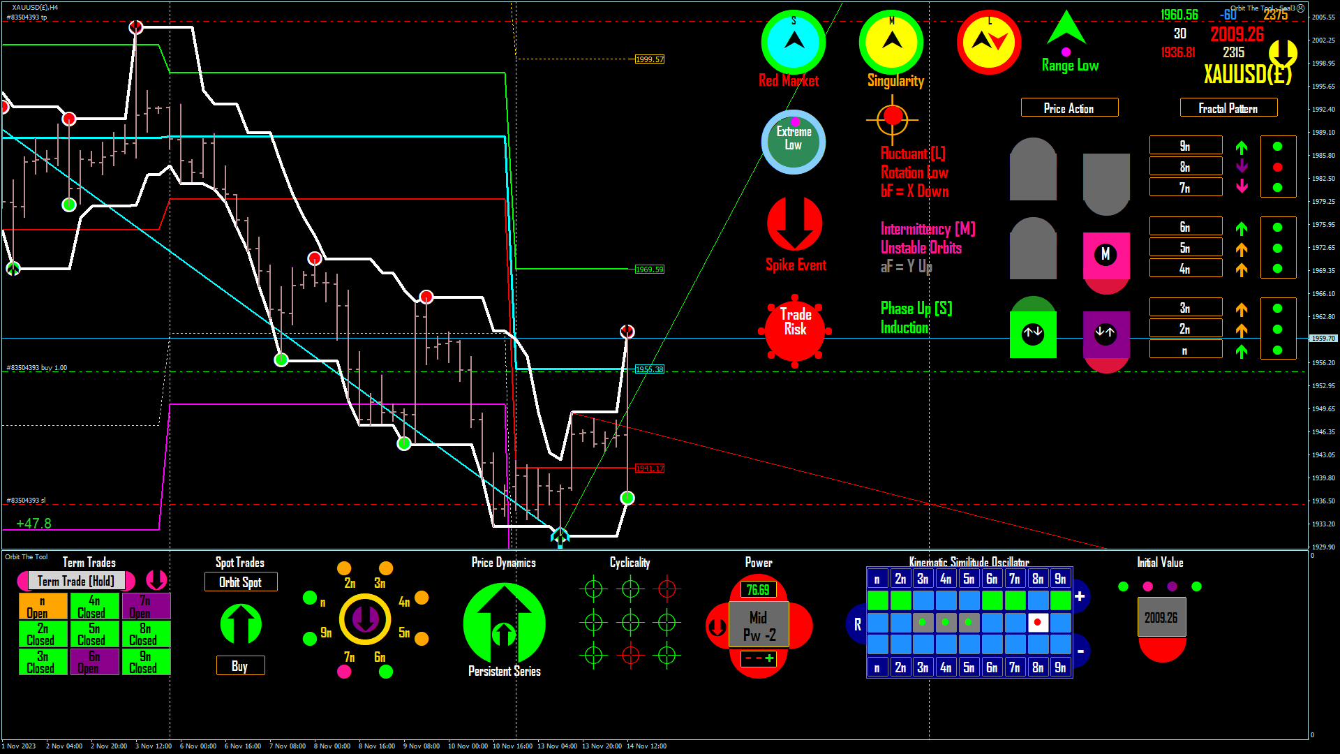 The picture shows H1 TF. Please note that at the moment the Orbit displays a situation, the starting point for which is the upper extremum at the level of 2009.31, formed on October 30, as the Initial Value section tells us. That is, the current screenface presents us with the situation regarding the last 15 days. This price action is shown by the large yellow arrow.