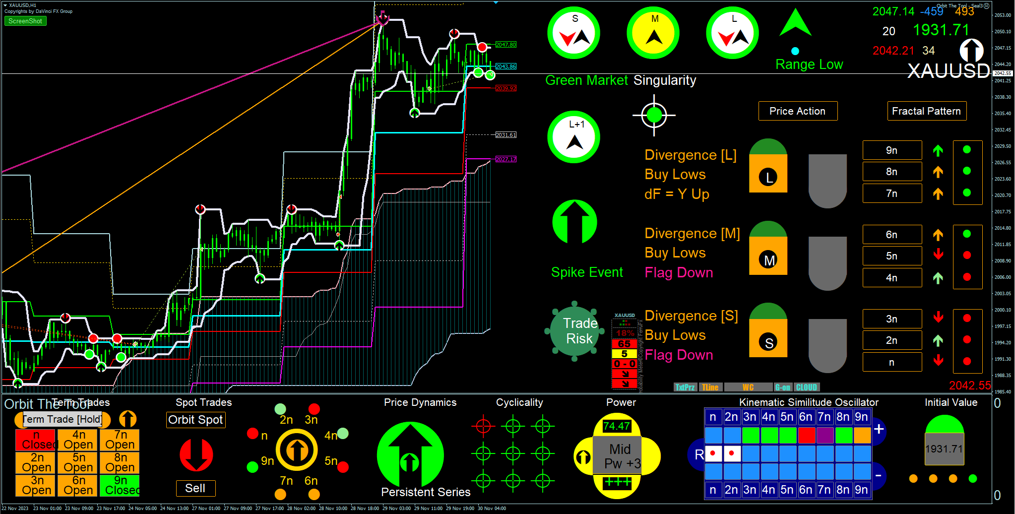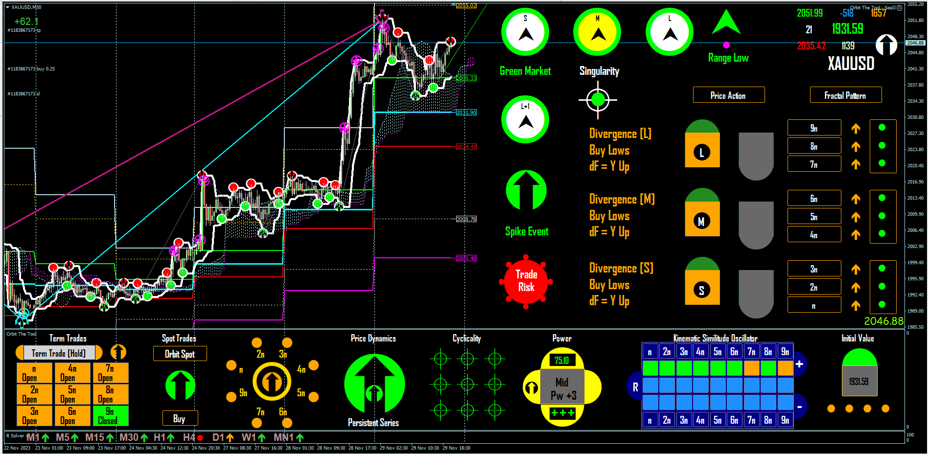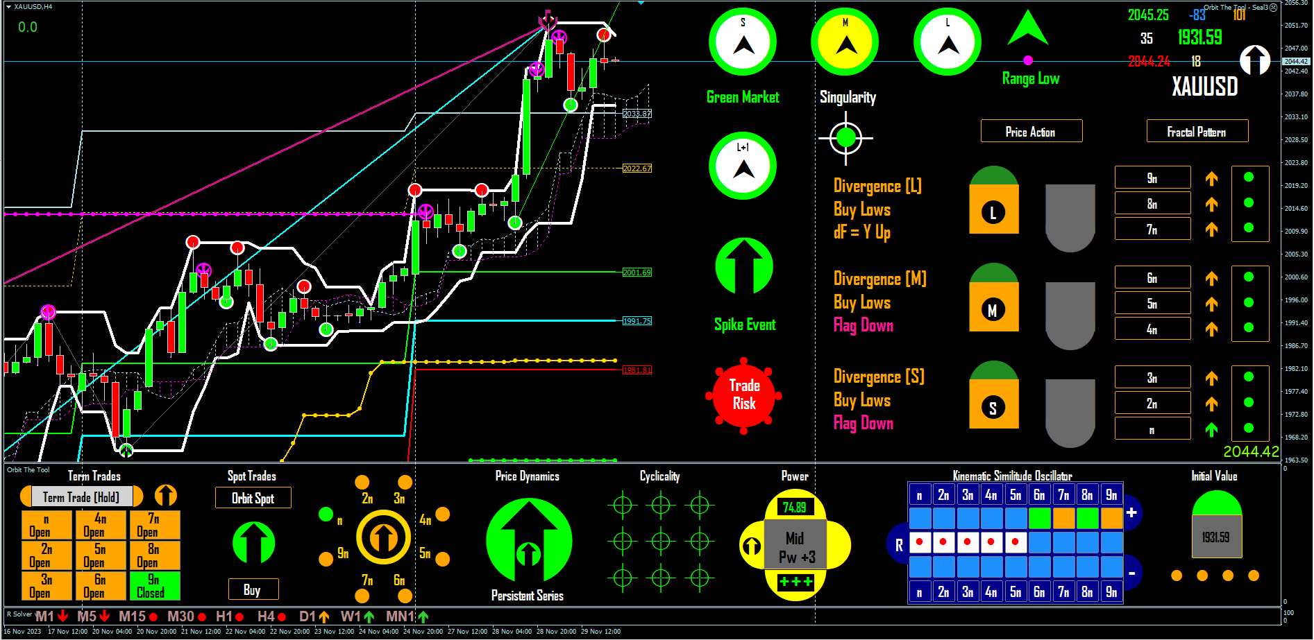 Hey @Dave 111 you have been MIA a while. You know I frankly have no opinion I can trust on that. We see that price has been consuming space in direction pretty rapidly and has broken the bounds in the Quarterly range of Gold ala Weekly MRI (but is strangely located right now less than 1980 Monthly TP on the Daily Time Frame MRI) but has space of course on the Annual MRI in MN 2169/2290 and the shape in WK is certainly very bullish appearing to be aiming to push MN to limits. Like @ImpLaNT suggested the bullish surface has expanded now leaving only MN Green as the next area to be liberated. We have 3x Price Action Arrows all hot up and we are in CMD 1 = Gold so anything is possible. However we are also absent the expected monthly candle opening not too long from now which again could be impetus higher but as you know my friend and as we have seen before at this time of great certainty and expectation going up is the time someone somewhere might decide to deflate the balloon. However my sense is if that were that to happen it would be temporary enabling a recycle that takes us toward MN MRI highs but I really cannot guess but any pullback now I involving H4 pivot low is a great chance to pile in up I think. Long ramble and no clear answers but you know we do not predict we simply follow Orders ------> sorry I meant follow Orbit the Tool. Hope you are well and me I am ok as can be and really working that article I pushing that it is out not beyond this weekend. Cheers my very good friend always happy to see you around.