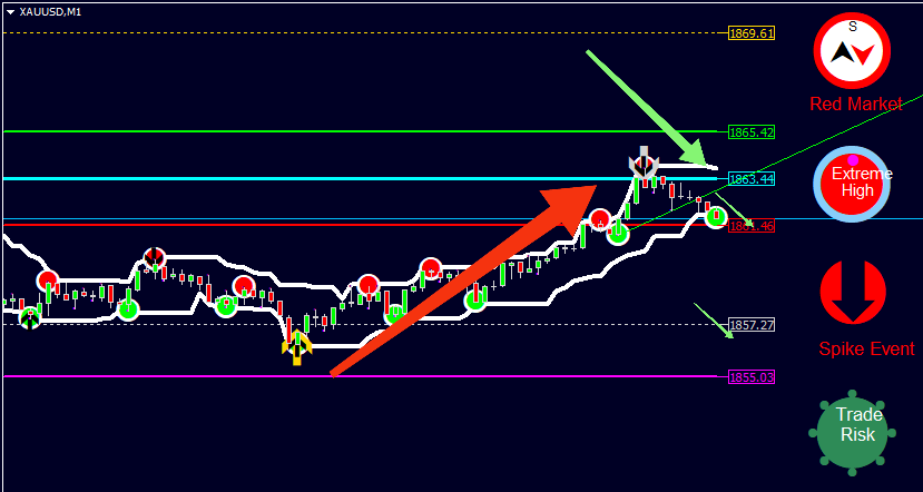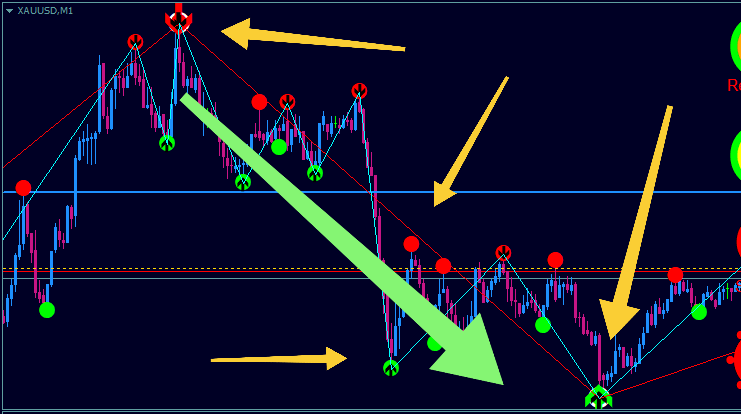 Here you go: The main issue is that there are 3 parts e.g. going down there is a) a top b) a middle that is inverted and c) there is the spike event and instantaneously you have the inverse kick in which is why you can be exact 100/100 times getting in and out of a trade. So to fall you have a) a cross down b) an inversion high (middle) and c) to end the fall a spike low event. Going up the inverse a) cross up b) inversion low and c) spike high. You do not see clearly (and me too) depending on how we dress up our templates so will look for a better template still but everywhere you go in market charts (any time frame) you see the same pattern. With my actual model you can tell end behaviours etc before they occur, because as opposed to the actual attractor mapping which is a mapping of specifically valued semaphores I will not show at this time, the pattern occurs in its dense form but imagine in the screenshot below just the crowns and you get the picture (TF is M1 which has high lacunarity or density of fractures) . Sorry not functioning too well right now got to go. But you get the picture. Need to rest thanks.