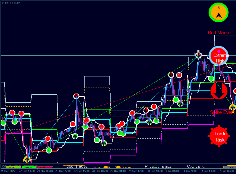c) Where is the spot arrow pointing? This is the risk for new bets. Are you coming from KSO lows or highs or is the distribution of partitions in the middle, and if so with what signs? Where is 9n - the unit in KSO anyway and what does that mean for the outlook you are reading? You are betting based on your read of a) and b) but the spot arrow is also your (best) lead based on your read of the KSO and Cyclicality - WHY? Momentum of course, how does that look from those 2 and the power reader (so all we have mentioned are not just indications they are context readers and require you to consider why you are deciding the way you are).