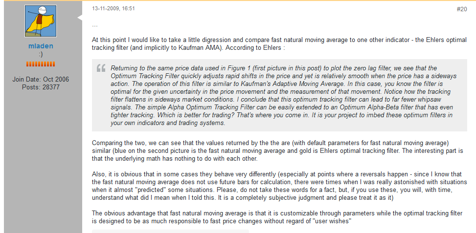 Ehlers Optimal tracking filter (E OTF-verses fast nma)