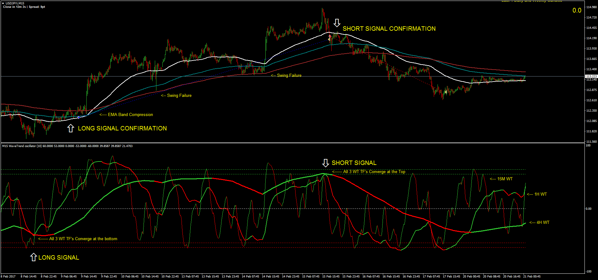 The 15M Candle has the 1H EMA equivilant and WT's of 15m, 1H and 4H.