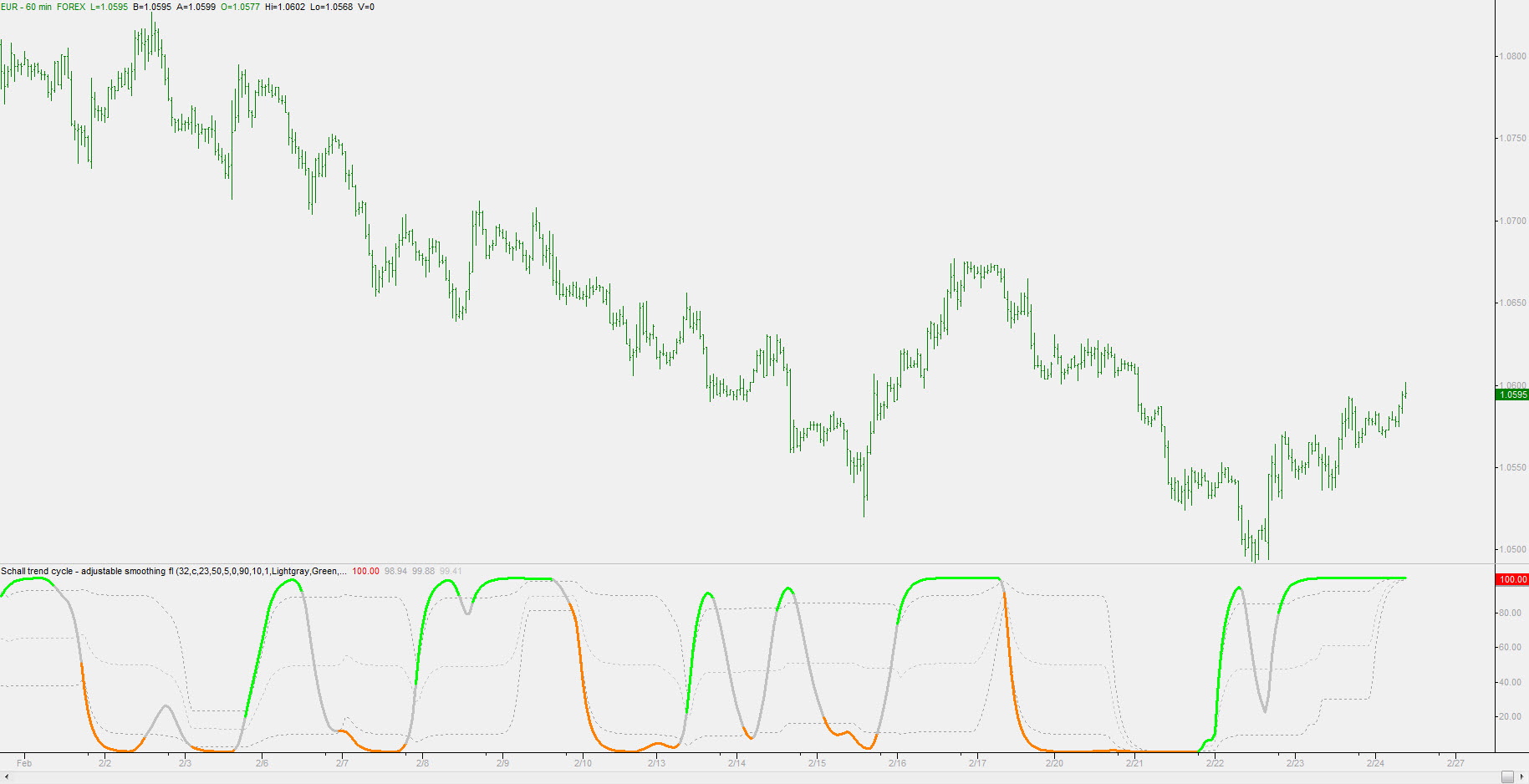 Schaff trend cycle (adjustable smoothing) with an addition of floating levels - seems to be useful for filtering out some of the signals