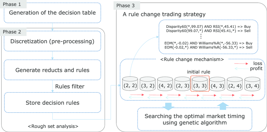 Many technical indicators have been selected as input variables in order to develop an automated trading system that determines buying and selling trading decision using optimal trading rules within the futures market. However, optimal technical trading rules alone may not be sufficient for real-world application given the endlessly changing futures market. In this study, a rule change trading system (RCTS) that consists of numerous trading rules generated using rough set analysis is developed in order to cover diverse market conditions. To change the trading rules, a rule change mechanism based on previous trading results is proposed. Simultaneously, a genetic algorithm is employed with the objective function of maximizing the payoff ratio to determine the thresholds of market timing for both buying and selling in the futures market. An empirical study of the proposed system was conducted in the Korea Composite Stock Price Index 200 (KOSPI 200) futures market. The proposed trading system yields profitable results as compared to both the buy-and-hold strategy, and a system not utilizing a genetic algorithm for maximizing the payoff ratio.