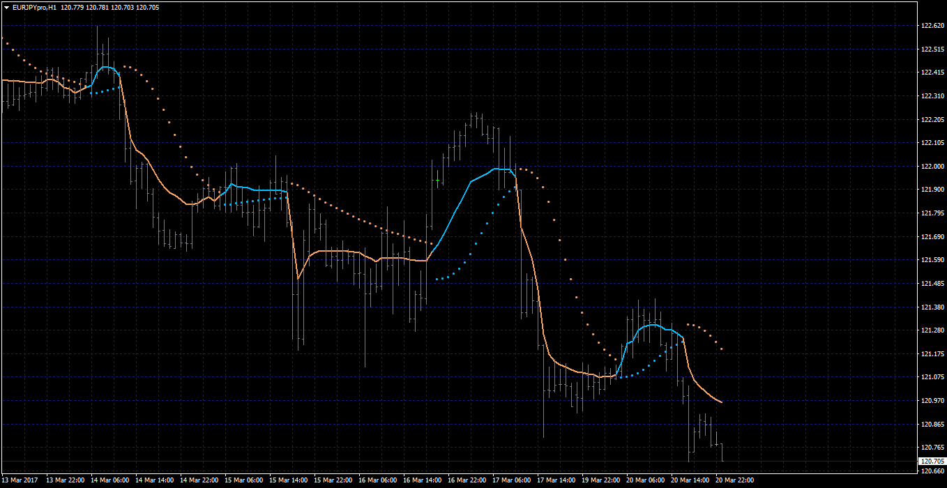 This is a Mladen's parabolic sar of kama. Indicator is mtf, with 20+ price options and with choices to display the psar values, the kaufman ama values, or both. Also the psar price can be filtered.