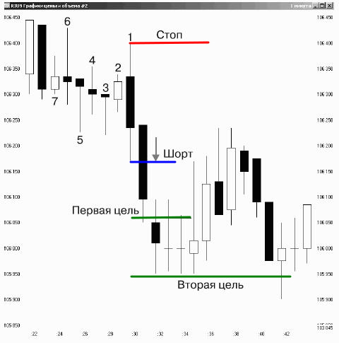 levels for opening of a position on a minimum or a maximum of this bar depending on the main tendency or according to your understanding of a turn of a trend.