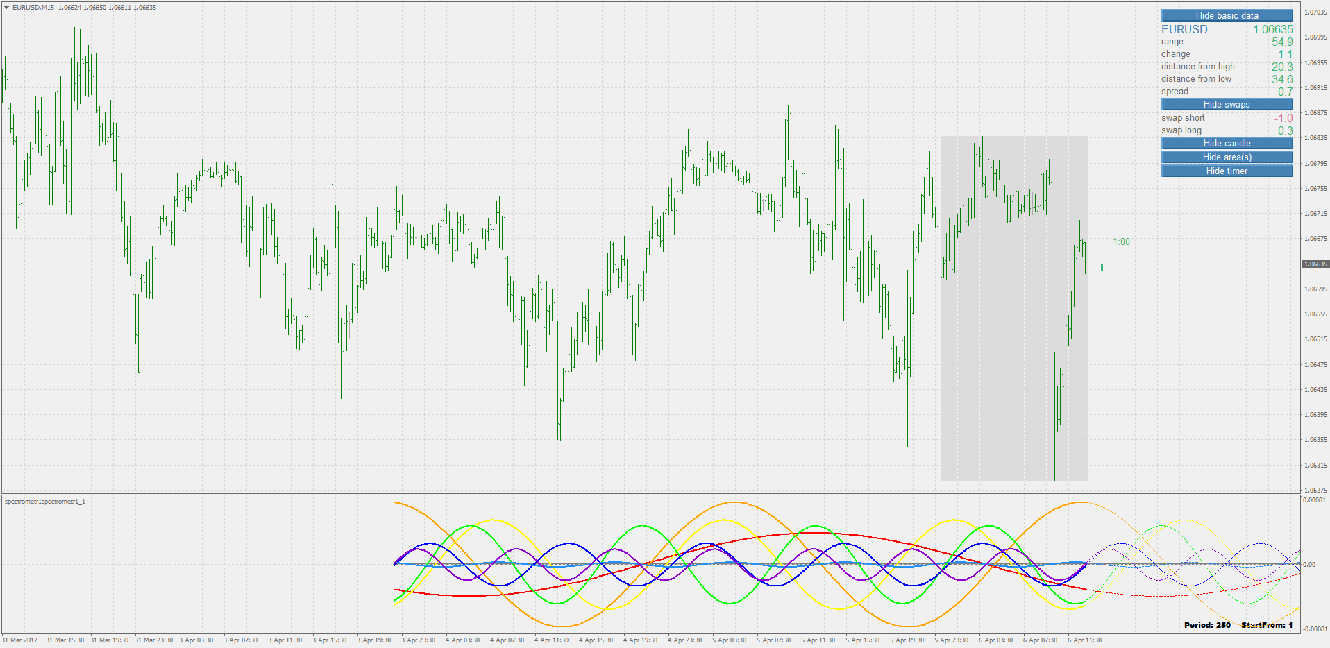 Just for the comparison sake : metatrader 4 "spectrometr" posted