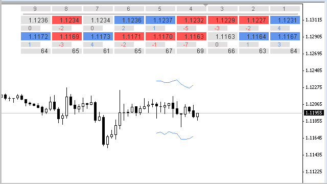 By default, this indicator displays nine values of two different Moving Averages (МА) for the current timeframe, a difference between previous sequential МА values and a difference between MAs in points. You can set the data display with positive or negative offsets and/or rounded to required decimal digits. Displaying the values for zero (current) bar is not supported.