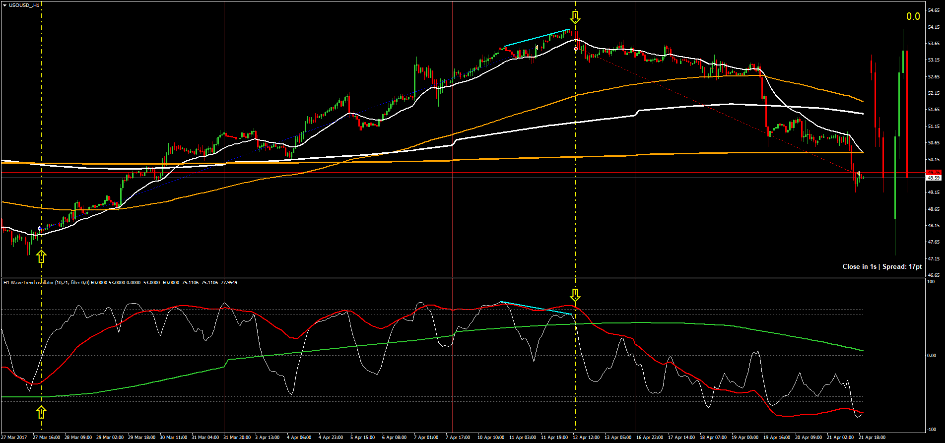 Using the rules and waiting for the 1H WT to cross over the 4h and daily WT.