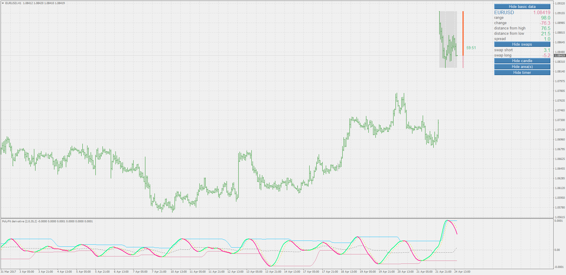 Upgraded version of dynamic zones polyfit derivative indicator