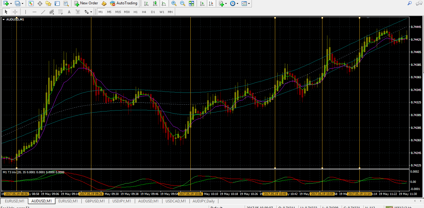 modify chart in heniken bars... but the logic needs the red line cross over and next bar to take trade (try demo)
