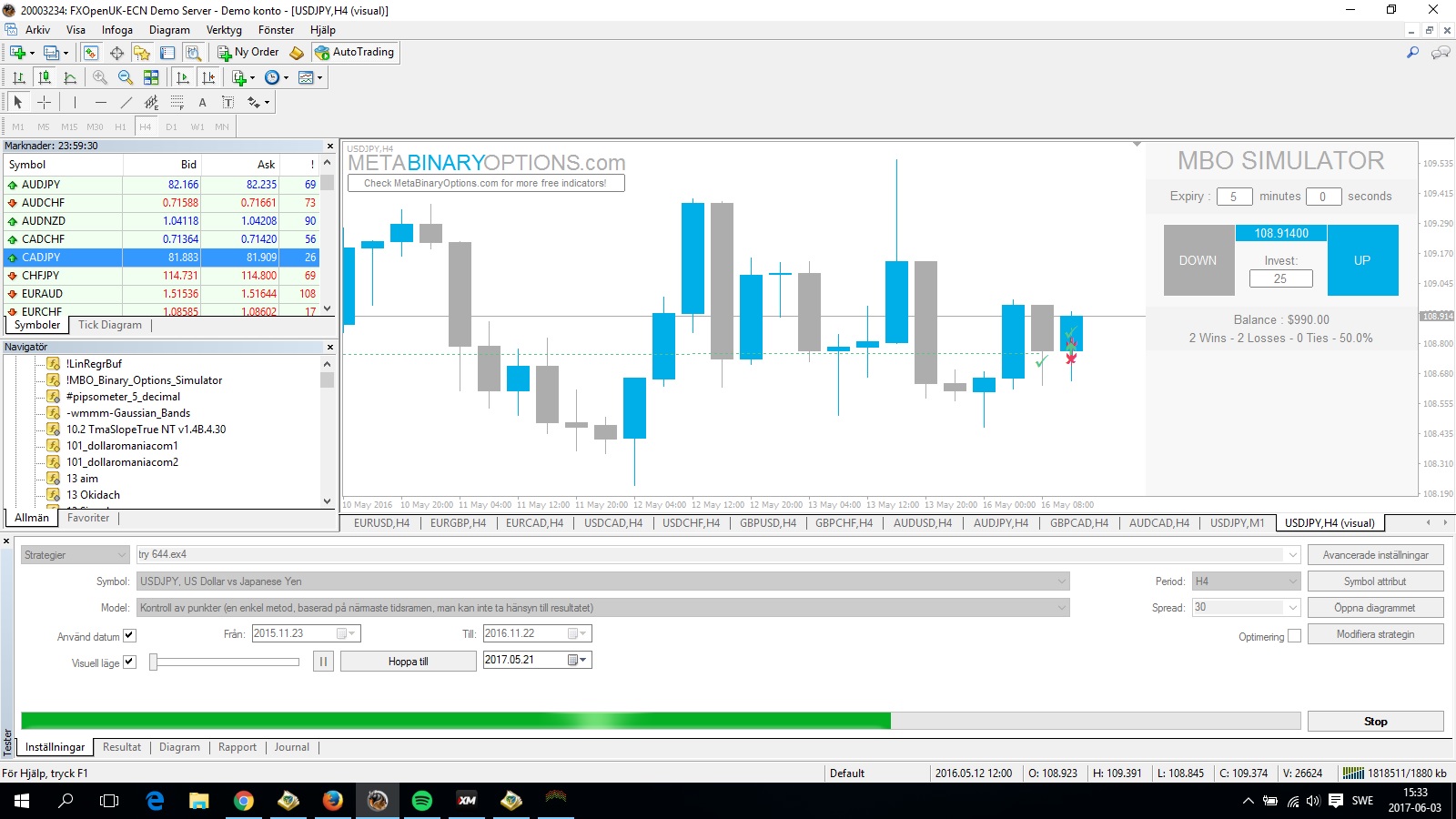 Can even be traded when backtesting charts , shows you how much you earned , winning trades % and so on .