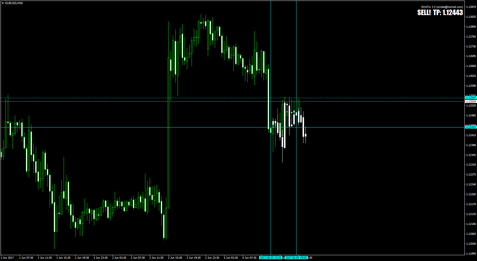 WMIFor30 indicator, forecasting for placing tp order with line and text.