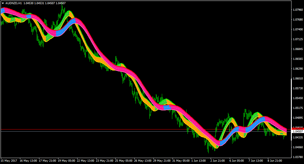 This T3 double bands filled version is slightly a bit different - it forming slope coloring according to up/down trend - and treating upper/lower bands separately,not bound with middle line