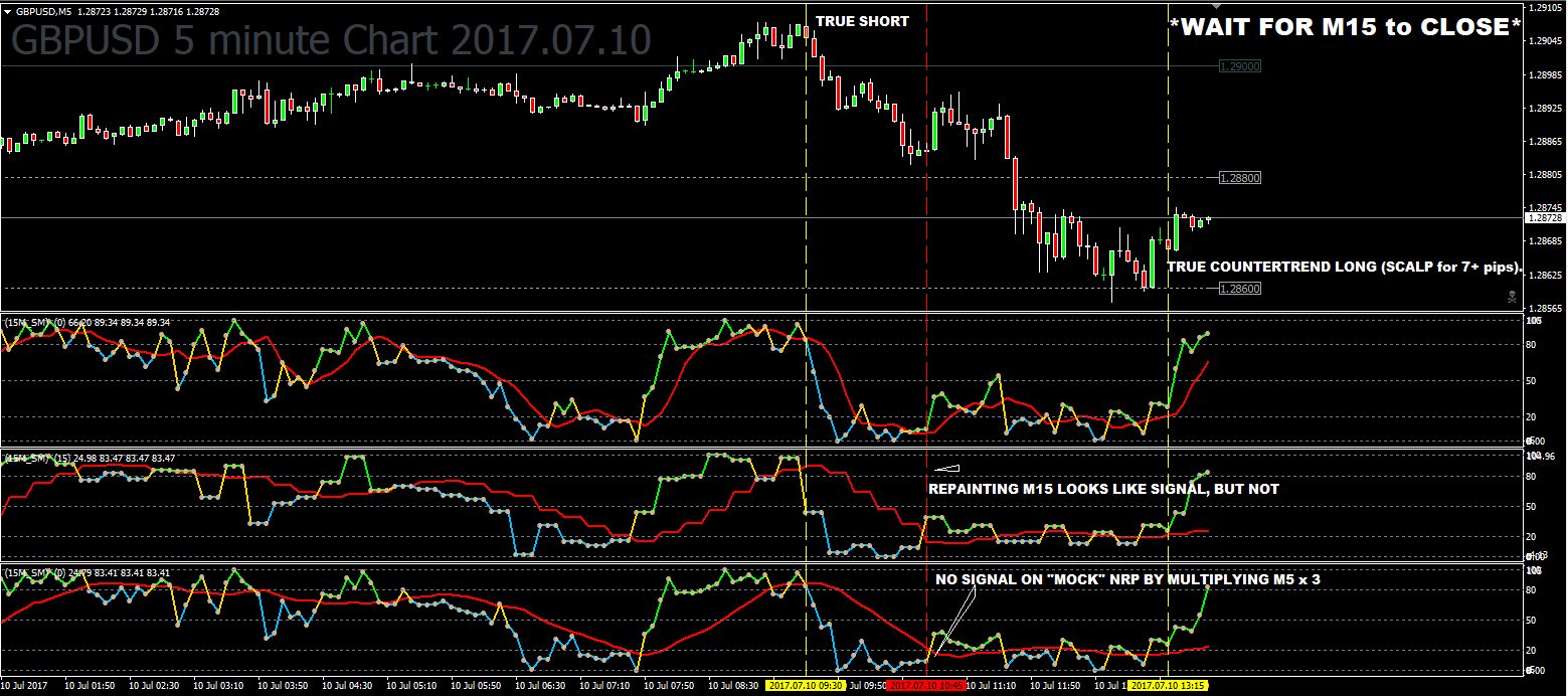 BOTTOM WPR_MA is M5 Chart, multipled x 3 for M15 settings 'mock' NRP and is more accurate.