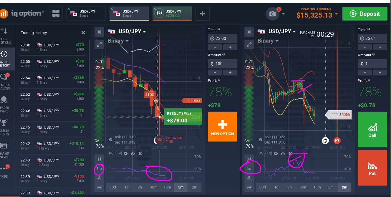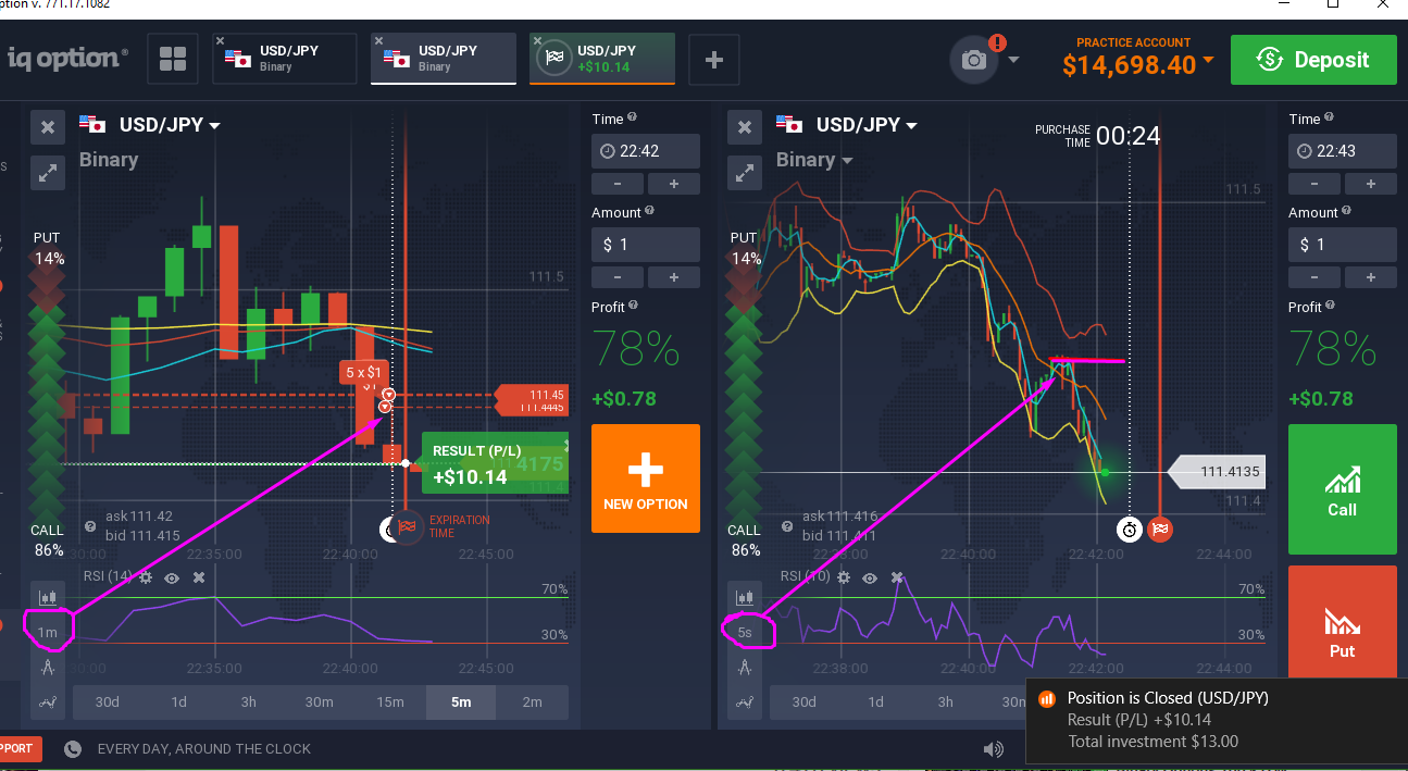 i use a simple MA +BB & RSI indicator for 1min expiry by using 5sec chart in IQOPTION
