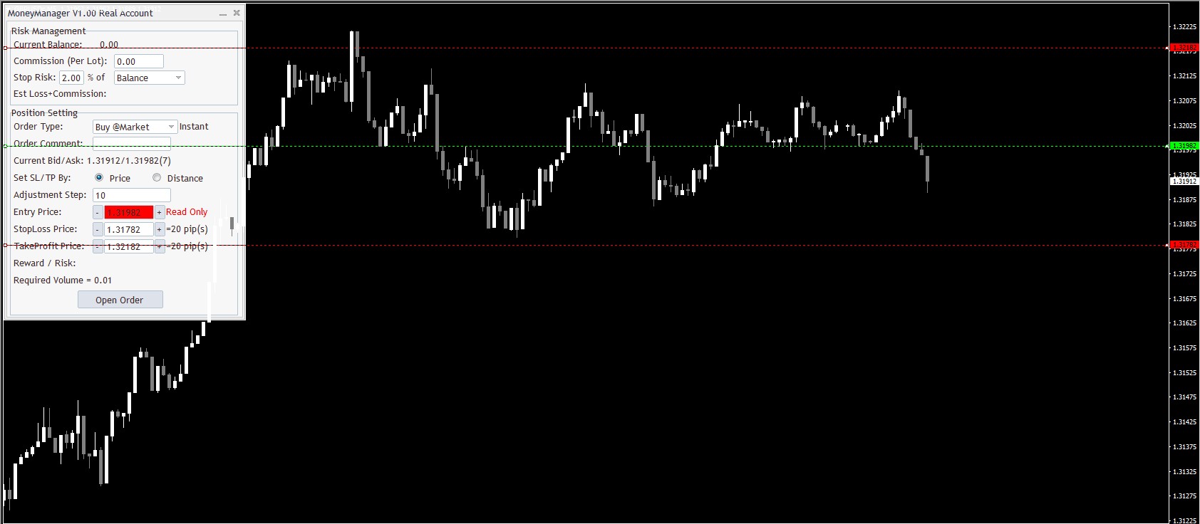 - Easily adjusting SL and TP levels with the help of the horizontal lines on the chart.