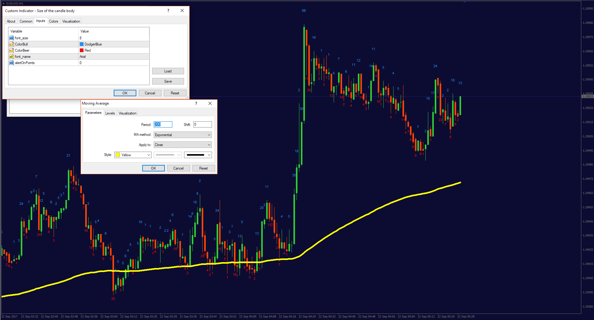 I’d like to ask you to make an indicator that can measure whole space between Exponential MA (200) and High (in uptrend) or Low (in downtrend) of the candle in real time and show this space in points or pips. If your work costs money, I’ll pay. Now I’m using indicator called “Size of the candle body” which attached here, but I’d like to improve it with this Exponential MA (200) measurement option. Thank you in advance and looking forward hearing from you.