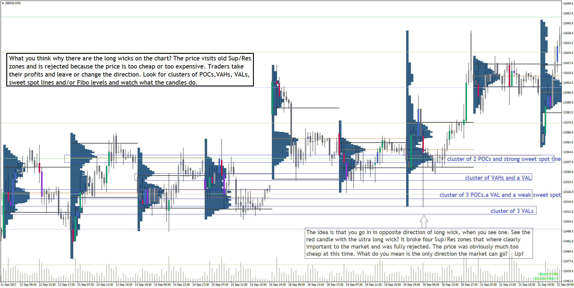The Art of Trading the professional way is to find important Sup/Res zone or lines and see how the market reacts to them. The more and more popular Market or Volume Profile can help to find them and to understand why the market reacts there and with some experience to set SL and TP. Price often runs from VAL to VAH or res versa or breaks out and runs back to VAH/VAL. POC are often points where the market stopps.