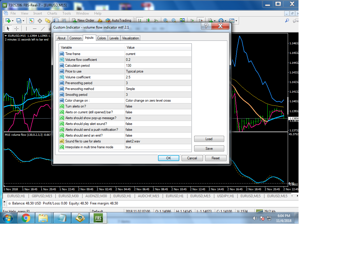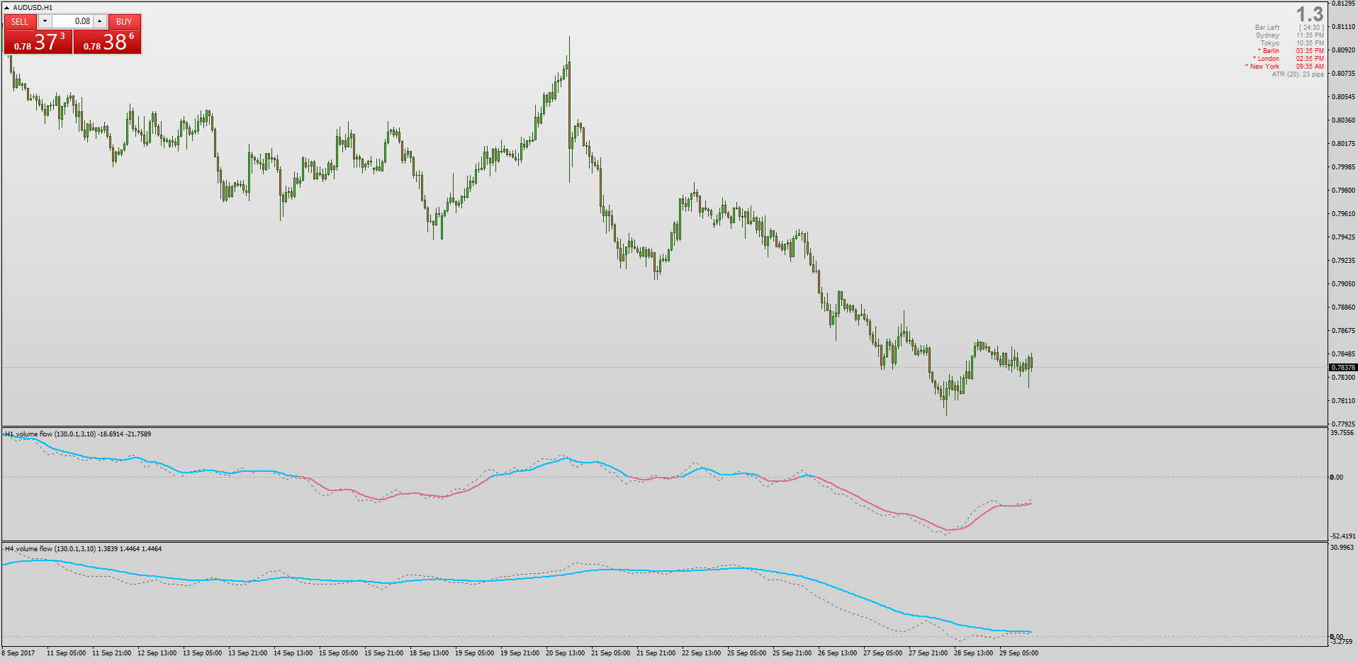 Mladen edit : The Volume Flow Indicator was already made by me but this version is some what changed - difference is that this version allows "pre smoothing" - the idea was to check if the value can be smoother but without lag - it seems to be working OK, (see the lower example in picture 2 for comparison - the difference is obvious)