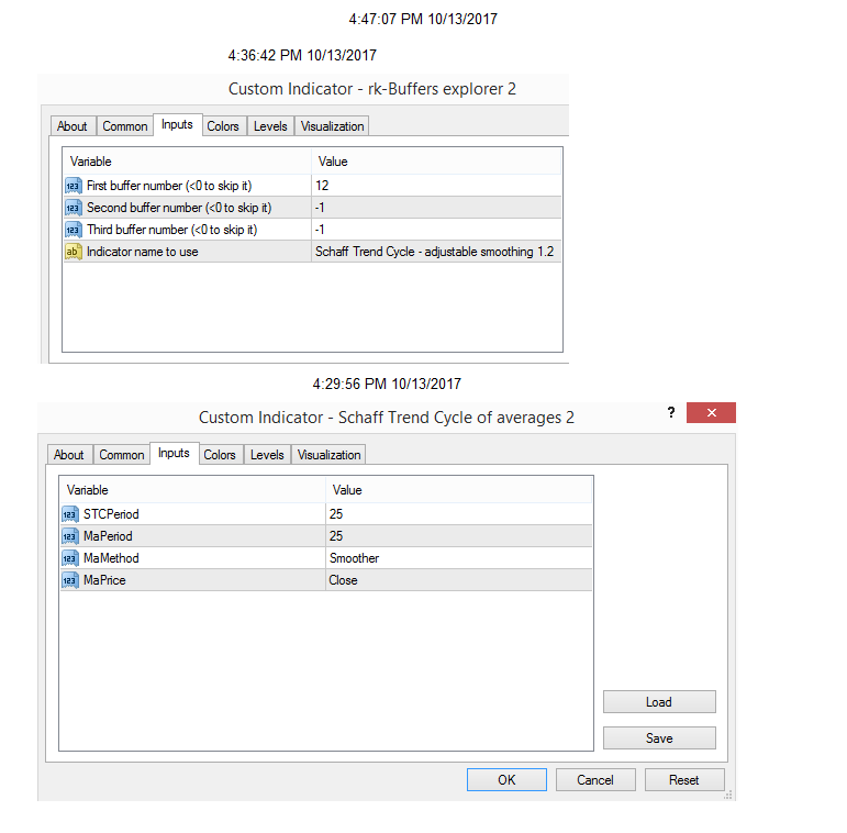 hereare the inputs & chart results. Both the test indicator and the explorer concer.