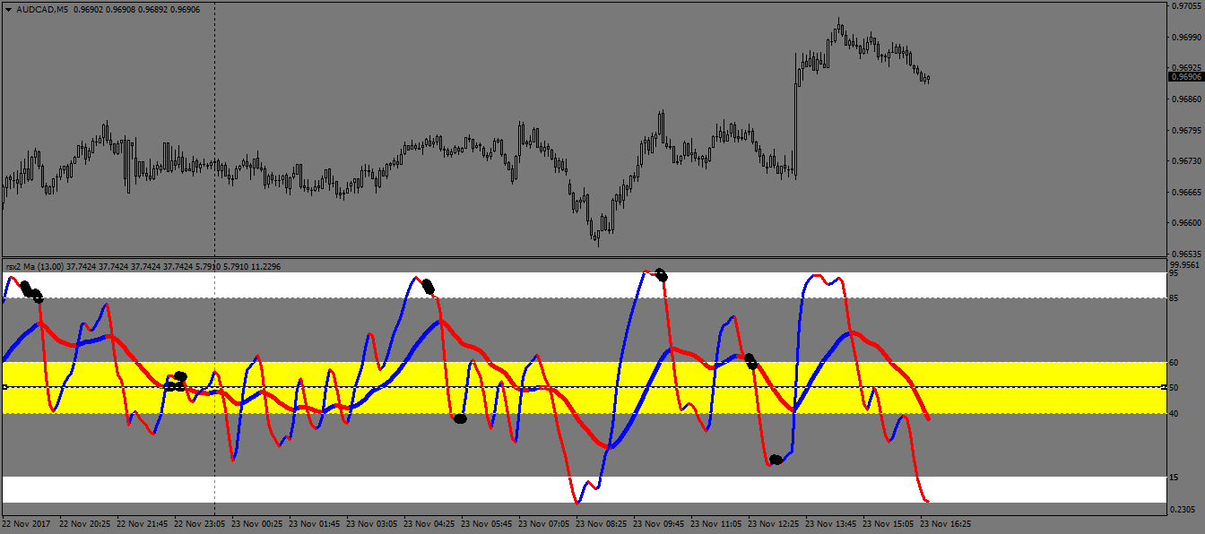 At the moment there is a signal that shows a line when the fast signal crosses the 50 level but there is more value in having both the signal and the alert where these two lines cross.