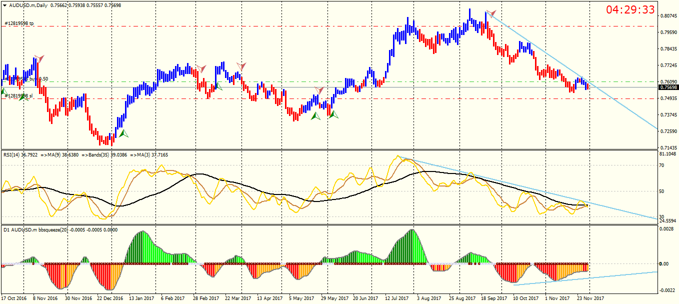 If and only If AUD/USD breaks the bearish trend line , buy TP @ 0.8 and STOP @ 0.7490