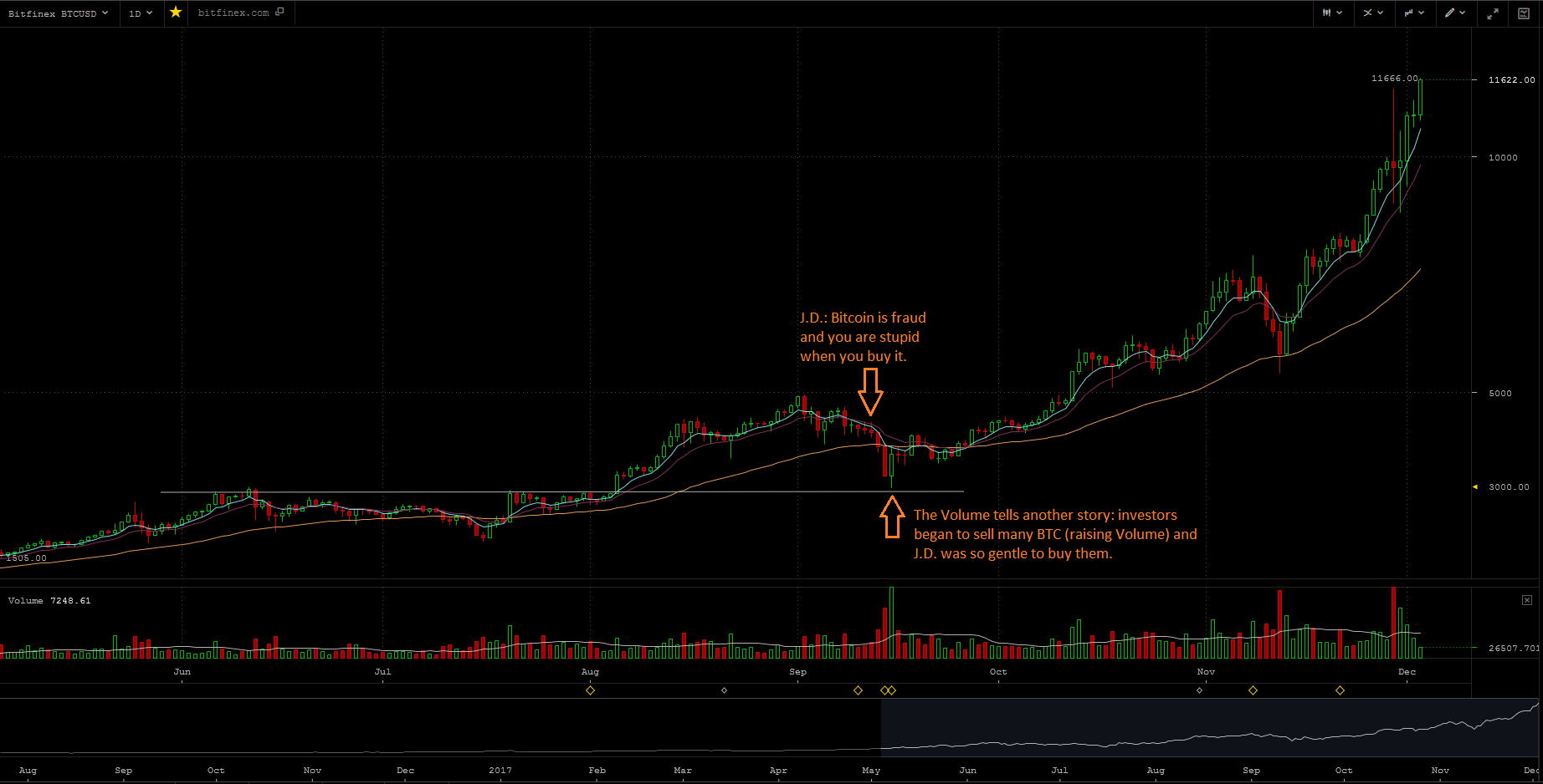 Fun-fact: Jamie Dimon, chairman and CEO of JPMorgan Chase, said Bitcoin is fraud and dreck and you'are stupid if you buy it on 12. Sept., but who was the biggest investor and heavily bought BCTs at 3,000pts and still over the support line 3 days later? Right, JPMorgan.