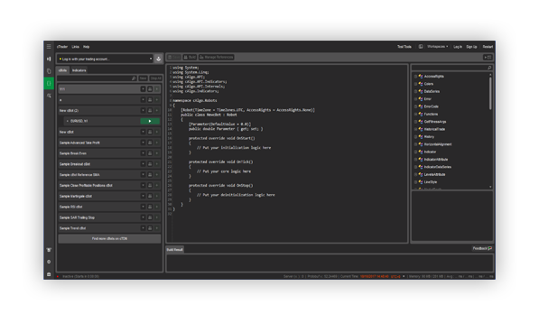 cTrader Automate is a powerful and intuitive solution where traders can develop algorithmic trading robots to automate their trading strategies. Traders can use cTrader’s modern C# API to write code inside the integrated development environment, test and optimize their robots and custom indicators.