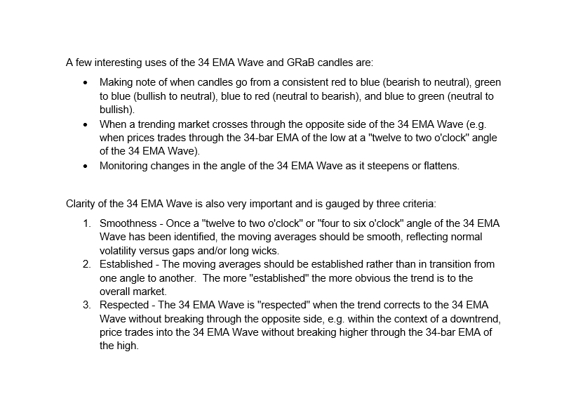 This overlay indicator sets up the 34 EMA Wave and paints the GRaB (Green Red and Blue) Candles used extensively by Raghee Horner trading style.