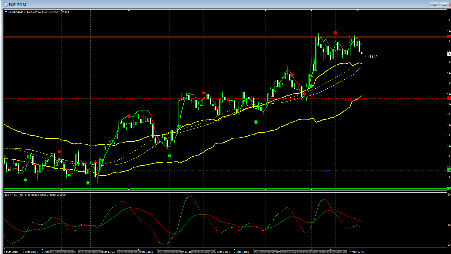 And now combining Sal's smartsignal with ATR channel..signal on outer band cross or middle line cross 8/9 ITM 5 min trade