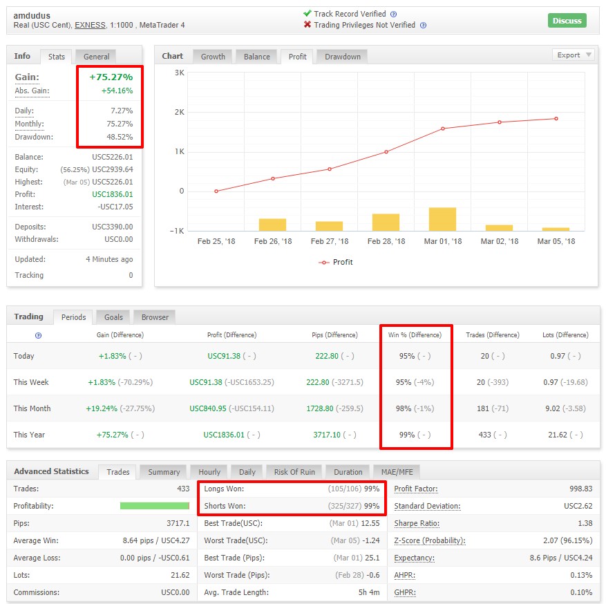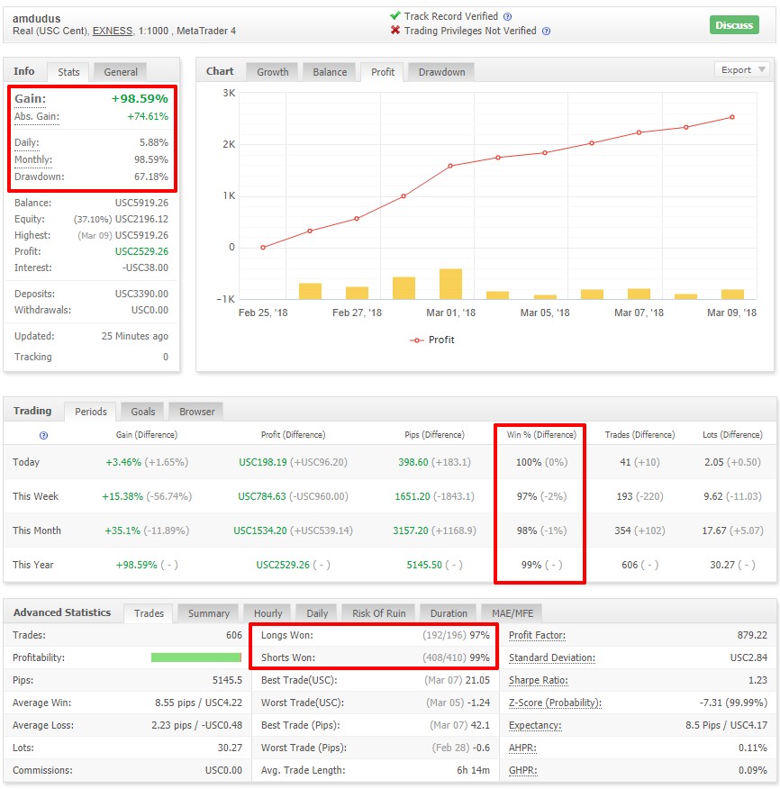 Testing was carried out on a real cent account of EXNESS broker.