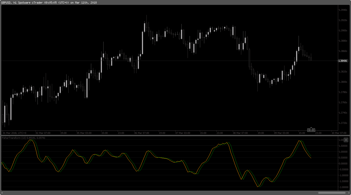 It assumes that price distributions behave like Square Waves. The Fisher Transform uses the Mid-point or Median price in a series of calculations to produce an oscillator. A Signal line which is a Previous value of itself is also displayed.
