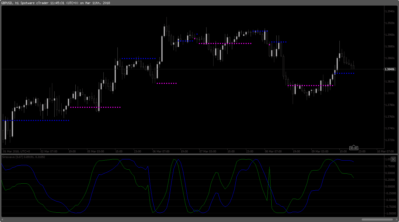 The Sine Wave (also called MESA) indicator is based on the assumption that markets move in Cyclical Patterns.