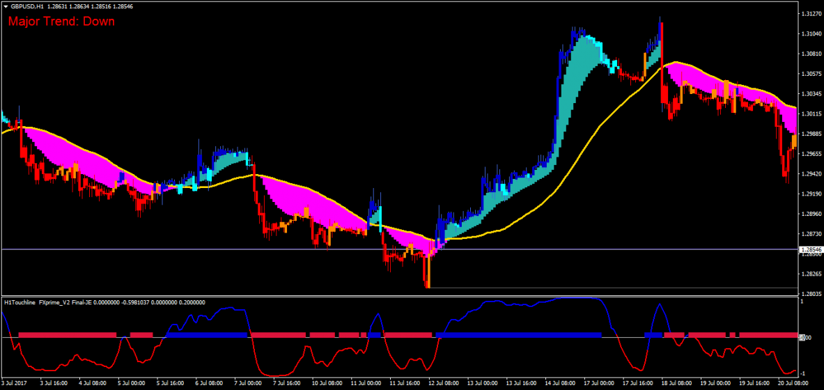 2)-- bar color--red color that matches with cloud color and indicators color in separate lower indicator panel.