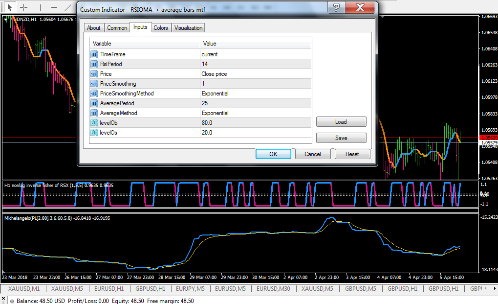 The version with usual 7 price options - 4 basic Averaging methods - all methods price smoothing capable - rsi Ob/Os levels select able and mtf too