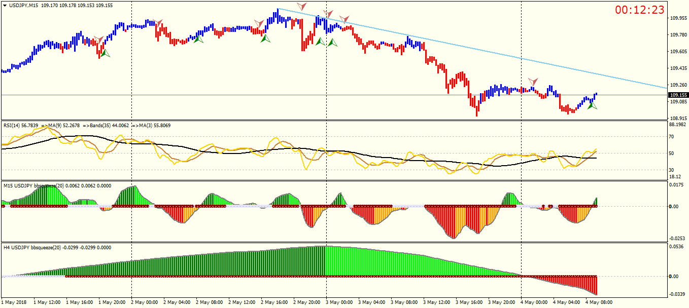 H1 , M15 : price moves to north-east , and squeeze indicators gets green.