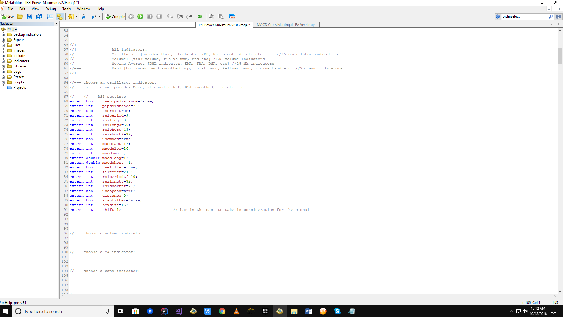 In below screenshot you can see the source code for RSI Power Maximum v2.03.mq4. RSI is an oscillator indicator.