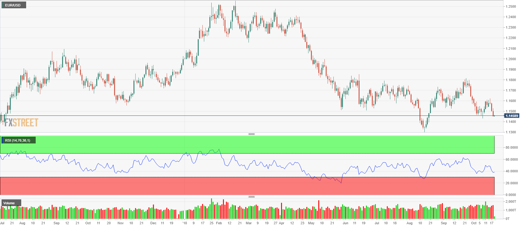 A short-lived attempt to recover ground at the beginning of the London session was capped by selling interest around a Fibonacci resistance level, a sign of resurgent dollar's demand. Such advance was backed by a positive opening of European equities and an uptick in US Treasury yields. Stocks and yields, however, turned south after the American opening, with mounting concerns about slowing global economy after the Chinese stock market collapsed overnight. There were minor macroeconomic releases both shores of the Atlantic that had little effects on the pair, with a modest increase in the German's Wholesale Price Index in September, and the October US Philadelphia Fed Manufacturing Survey, which came in at 22.2, beating the market's estimates of 20.0. The pair made a second attempt to break above 1.1520 on comments from ECB's Draghi, who repeated his optimistic outlook of the local economy, but sellers pushed the price back lower.