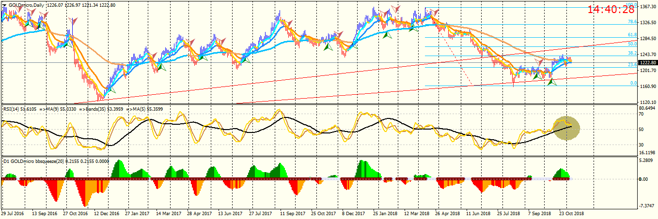 GOLD : is under the pressure of 21EMA WEEKLY moving , could not go higher , RSI near the 50C.L ,,