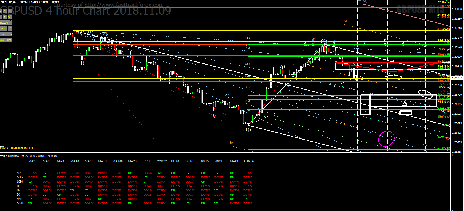 But the principle of shorting now is very clear from both the Elliott wave pattern and the confluence of indicators from the Multi-Info Evo.