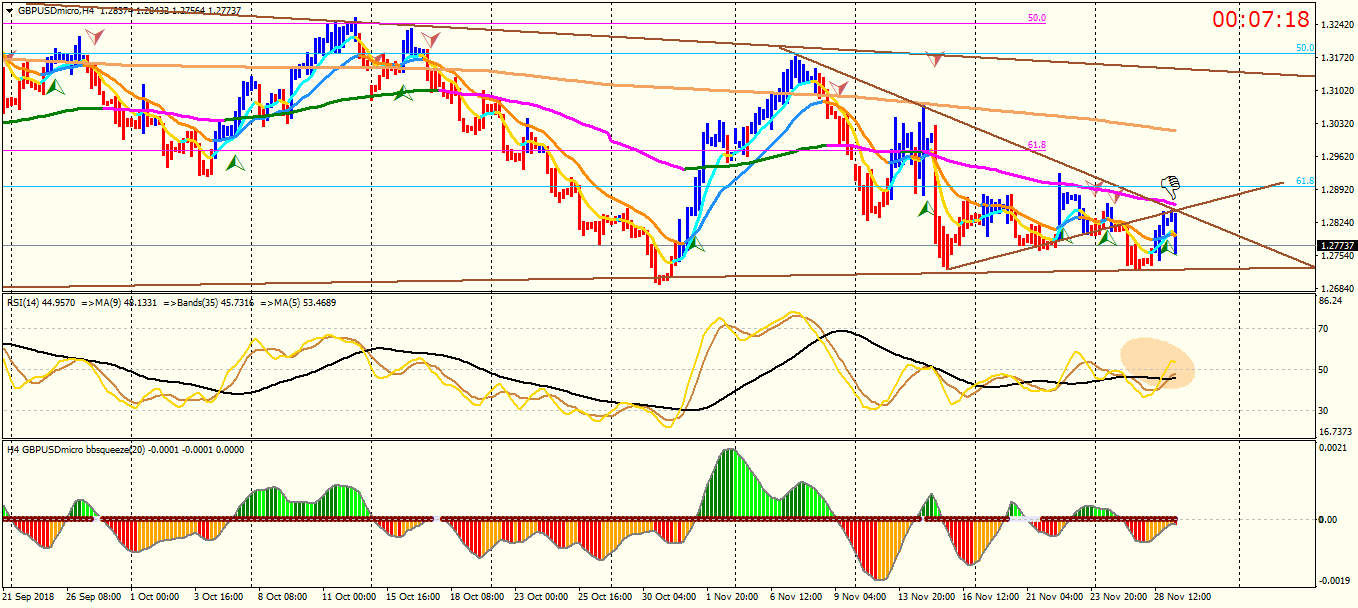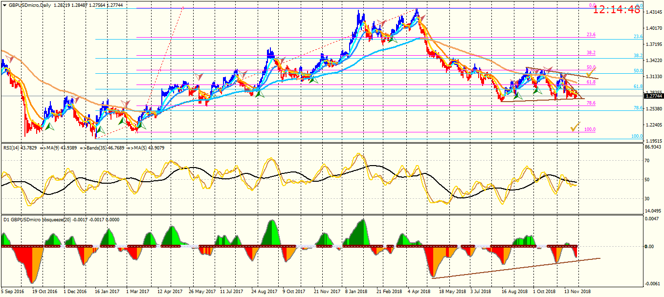 Look at GBP/USD chart again , GBP/USD is under pressure by some bearish daily trend line and push up by a good 61.8-76.8 fibo level and daily support zone , ( I have shown on the daily TF chart) .macd & rsi wrote: Mon Nov 19, 2018 7:42 pm GBPUSD :