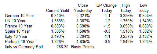 In the US debt market, the 2 year is up modestly. the 30 year is down -1.8 bps. The 2-10 euros for it is down to about 20 basis points as the market shifts the tightening bias of the Fed in 2019.