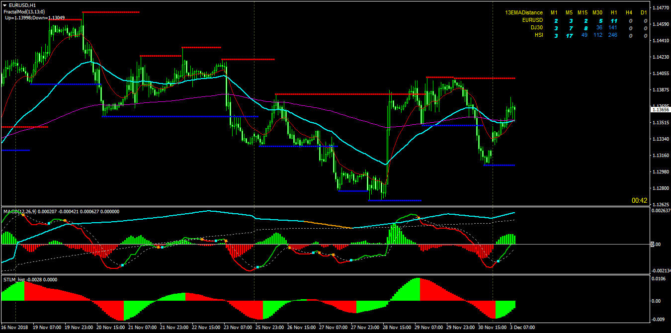 shows distance of prices from specified moving average in mtf mode with different colors of specified user defined instruments.