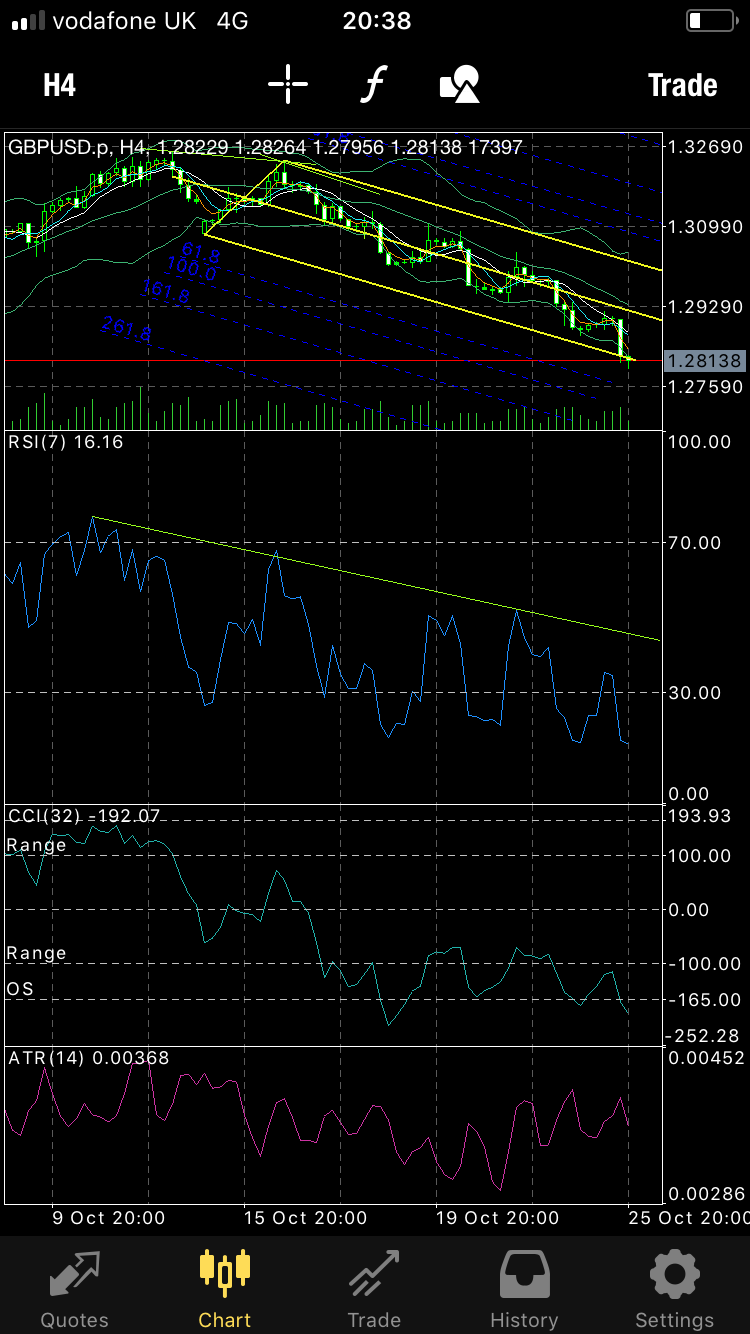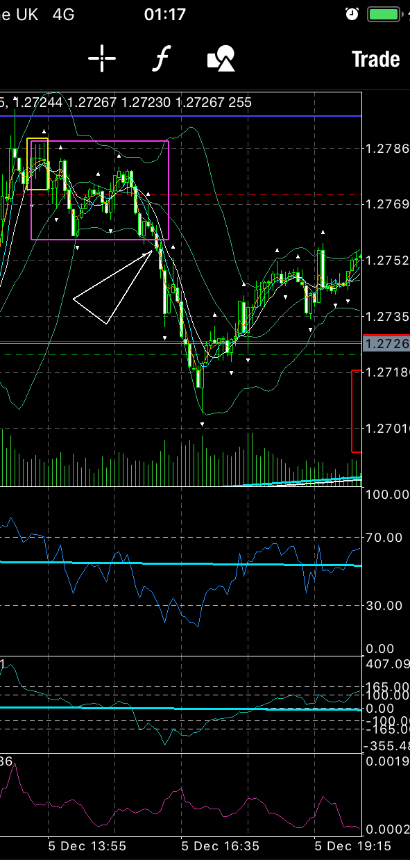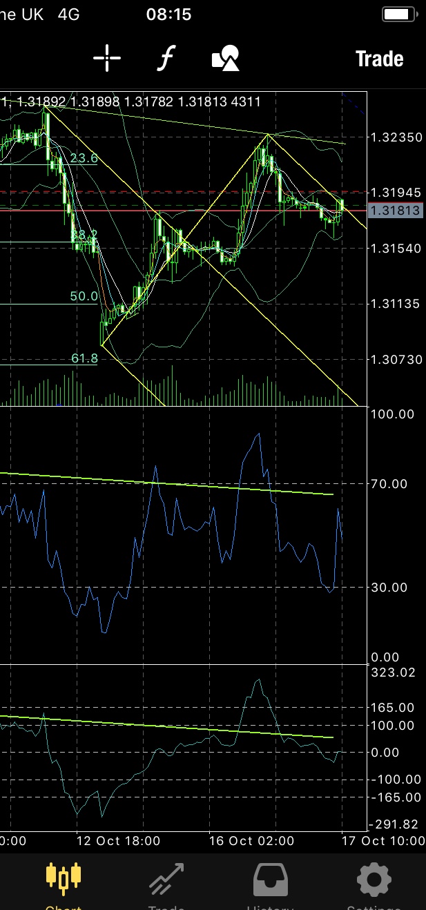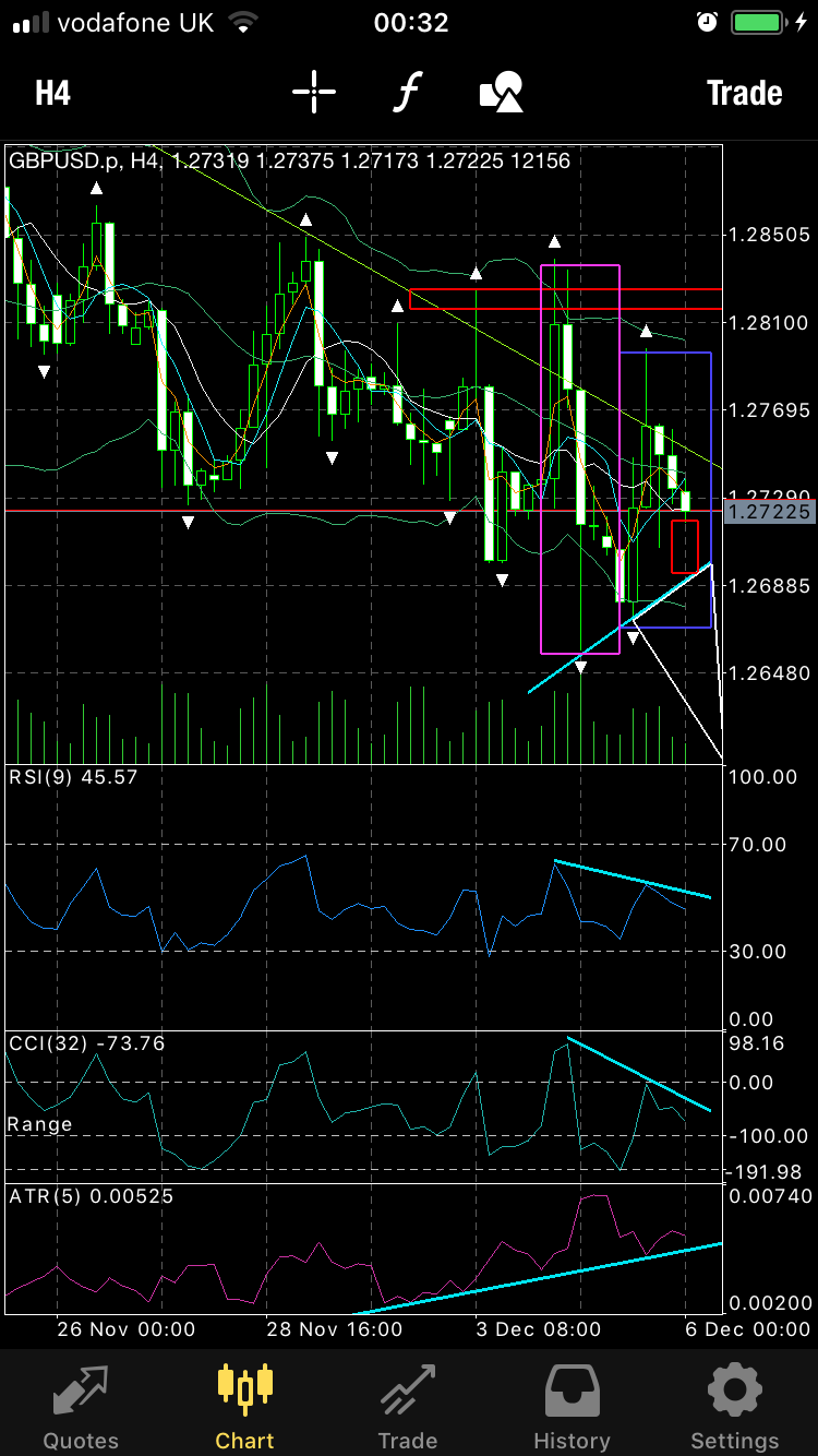 You should see straight away that the simplest trade is now a break of the “inside formation” to the downside, through my aqua trendline on the mobile MT4 chart.