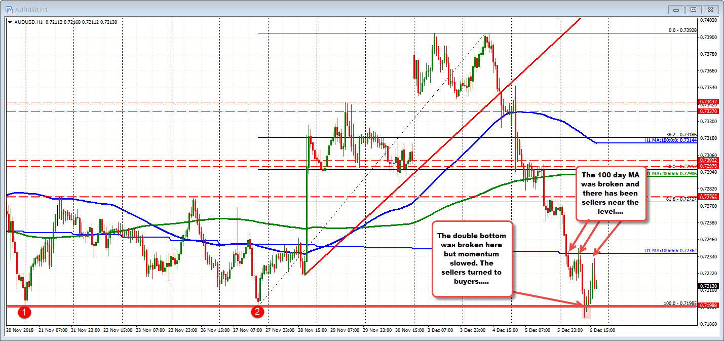 On the topside, the fall today took the price below its 100 day MA at 0.72362. The price correction off the low reached 0.72324