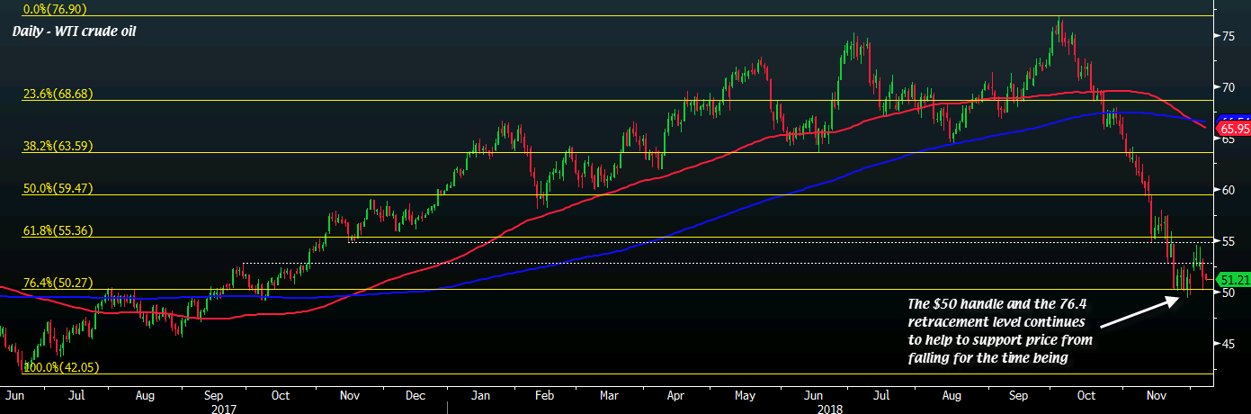 Right now, price continues to stay supported just above the $50 handle with yesterday's low touching $50.08 and the daily close coming above the 76.4 retracement level once again. The OPEC+ meeting is set to be the key focus of market participants in European trading, with one eye being kept on the US non-farm payrolls to come later in the day.