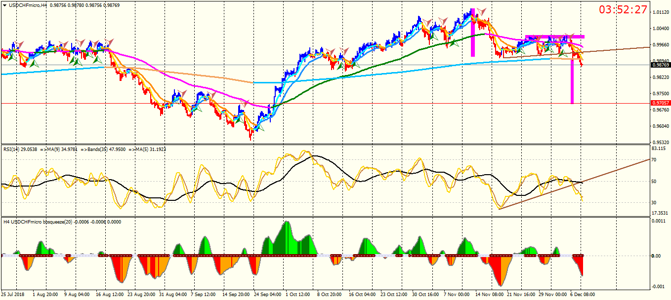 OK ,, last week ,, the sell signal was issued by system , and now , price is 0.9870 . After a little up and down waves , price will reach the target,, you see ,, I do not analyse the short term movement ,, I discuss about around one week .macd & rsi wrote: Thu Dec 06, 2018 6:48 pm USD/CHF :