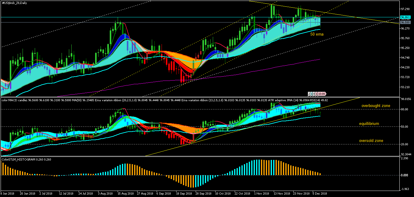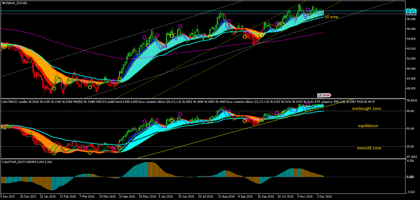 yes may be this time around usdindex will break trend line and 50 ema on daily charts, it is just trying to dip below its trend line and just supported there by 50 ema on daily chart, in any case usdindex is trading in overbought zone for a while now an consolidating. may be fed can give trigger for it.macd & rsi wrote: Mon Dec 10, 2018 5:26 pm USD/CAD :